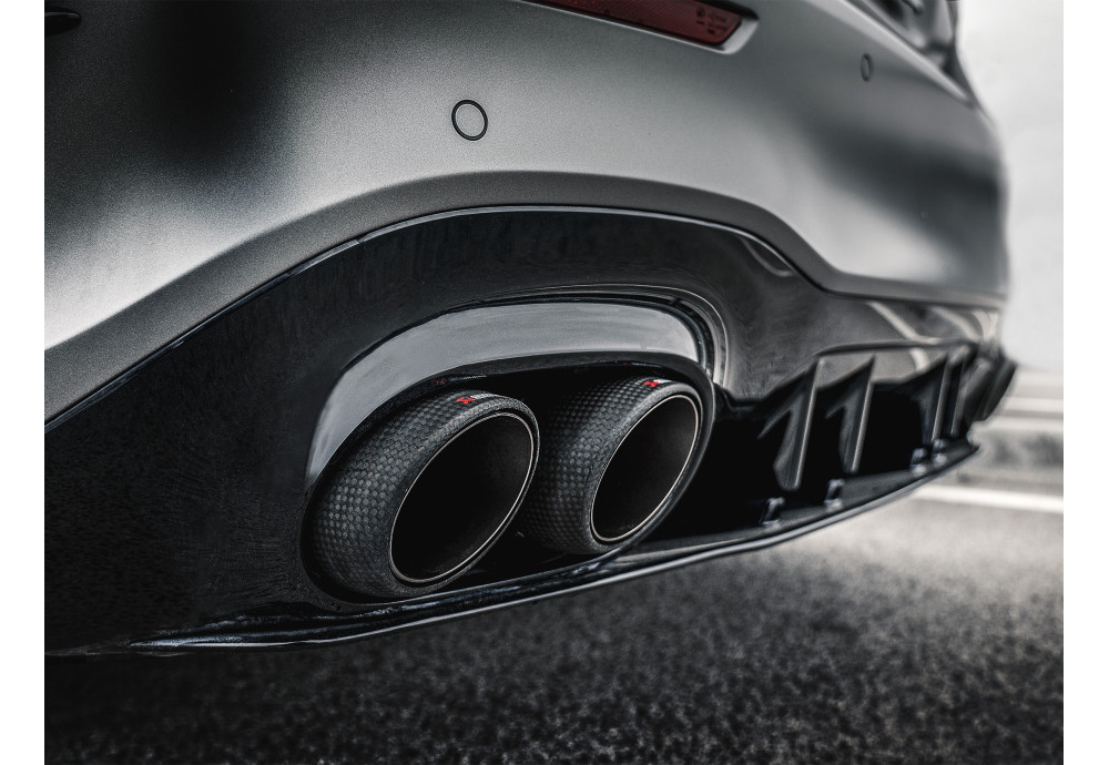 Providing a stunning sensory experience, this lightweight exhaust is beautifully crafted from high-grade titanium and finished with an eye-catching design of two pairs of titanium and carbon-fibre tailpipes. The exhaust valve – with its housing cast in the in-house foundry – gives the sound from the exhaust a richer and higher frequency than stock, especially when shifting through the gears, all allied to a smooth sound that enhances the car’s engine tones without any discomfort or drone for the occupants. A specially designed perforated manifold tube on the valve side eliminates streaming without any compromise to the pressure pulse distribution, thus offering a stronger sound. Lighter than stock due to the use of titanium and a different configuration, the design and construction of the exhaust leads to optimization in the power and torque levels throughout the entire rev range. The optimized flow path of exhaust gases provides greater tuning potential, something that can be realized further with the addition of the optional Evolution Link pipe set (SS).