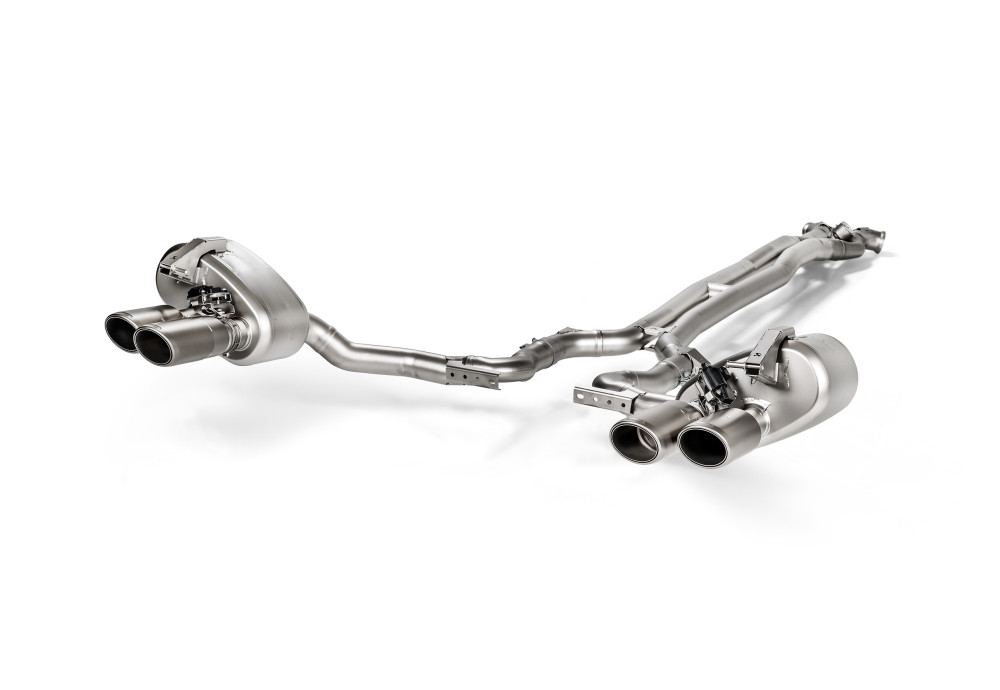 This stunning system is made completely from high-grade titanium. It includes parts cast in the company’s in-house foundry, featuring an active X connection and an additional pair of exhaust valves behind the rear mufflers, designed to provide optimal control of the exhaust sound for the best aural enjoyment. The system has been perfectly tuned to deliver the very best sound experience in all modes – enormous effort was invested to give it a sporty, deep higher-frequency V8 sound with an unmistakable Akrapovič character, while keeping it smooth and eliminating any drone for maximum everyday comfort. By using the optional Akrapovič Sound Kit, the driver can choose between a loud racy sound or a quieter note for long-distance driving, regardless of the mode chosen for the vehicle. The look of the Evolution system can also be further enhanced by adding four round titanium or carbon-fibre tailpipes.