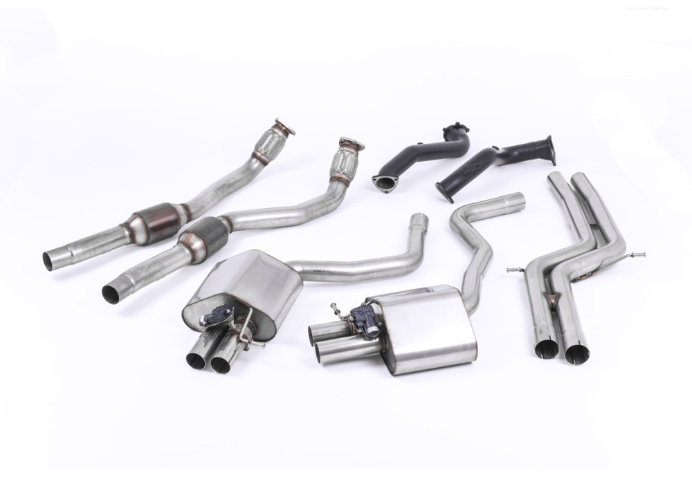 Non Res with 76mm Downpipes and 100cell cats. Uses OE Tips. Requires a stage 2 ECU remap