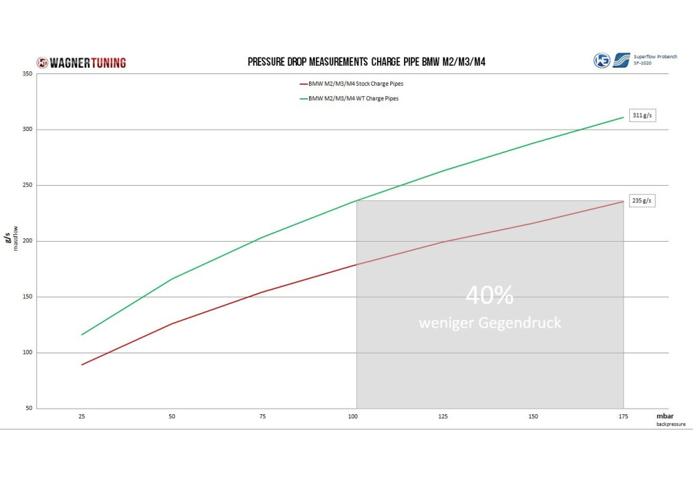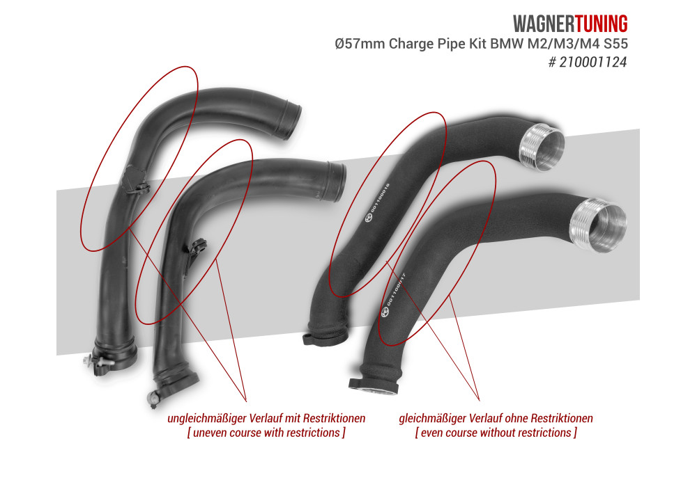 - compared to the OEM Charge Pipes, the Wagner Tuning system has a larger flow diameter and no innumerable internal cross-sectional changes, as can be found in the OEM product;