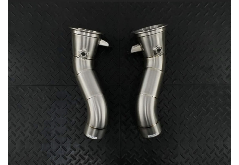 DTM-Tuning's ultimate Porsche 992 Carrera exhaust modification. Achieve unparalleled airflow, an awe-inspiring auditory experience, and a remarkable 11kg weight reduction. Crafted for clients seeking peak performance, our Titanium Competition Pipes offer an ultra-lightweight solution, eliminating the OEM cats and muffler. Unleash the exhaust directly from each turbo to the exhaust tips.