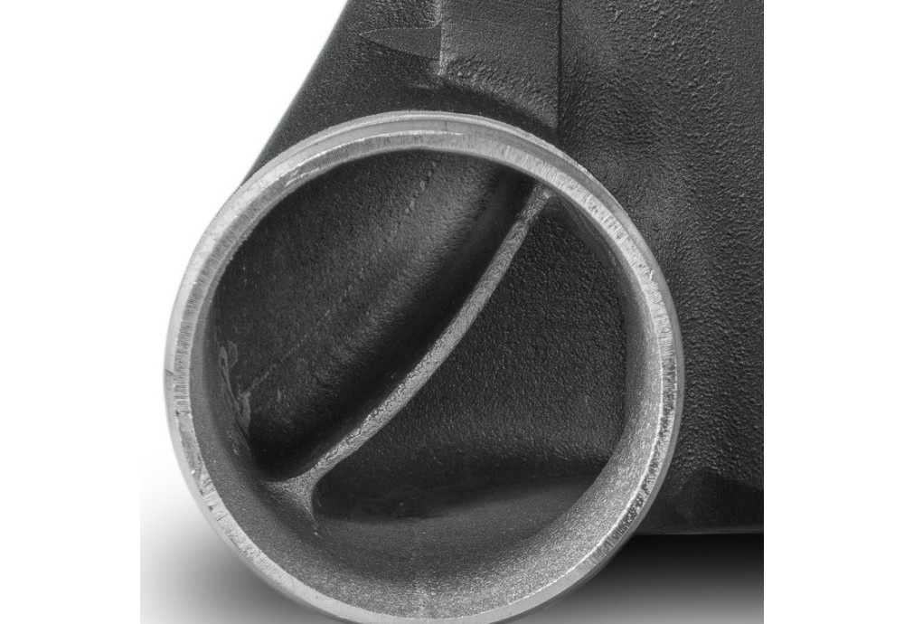 Our award-winning engineering team has improved the intercooler's core size and efficiency, as well as the endtank design, to provide increased flow and charge cooling properties. The intercooler is constructed of the highest quality tube and fin cores, combined with cast aluminum endtanks optimized by CFD for optimal internal airflow. The additional air guides and uniform filling of the intercooler ensure excellent cooling properties and reduced pressure drop compared to the stock intercooler. Despite its size, the complete intercooler weighs only 8.9kg!