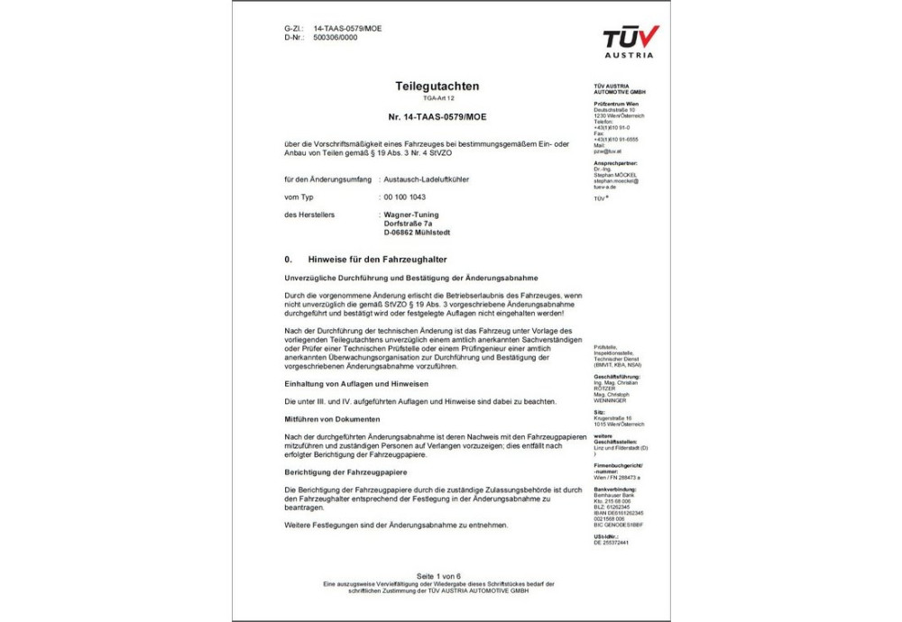 Wagner Tuning kit is completely ready to install and allows for easy replacement with the factory intercooler - a true plug-and-play experience. You can continue to use the original charge air hoses.