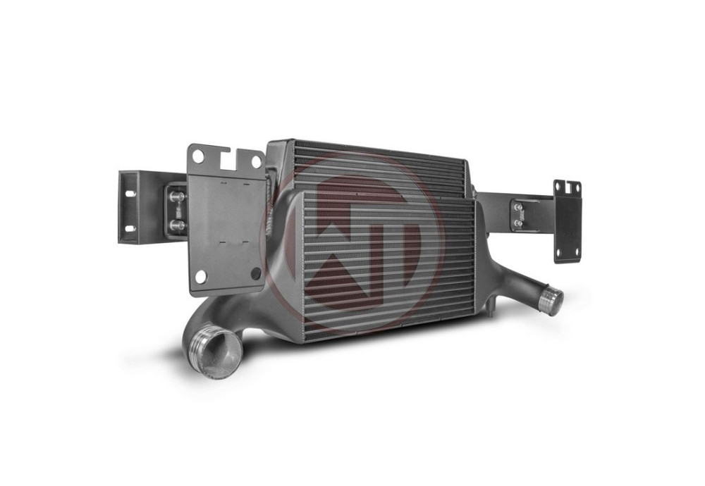 The high performance intercooler has the following core dimension (515mm x 367mm x 95mm = 16.500cm³) and thus offers a 84% larger cooling surface and 101% more charge air volume compared to the original intercooler. Our engineers have increased the intercooler core size and efficiency, as well as improved the end tank design to remove any OEM bottlenecks, resulting in increased flow rating and charge cooling properties. This Audi TTRS 8S intercooler uses our award winning WAGNER TUNING Competition Intercooler Core, which is made specifically for this application. Constructed of the highest quality Tube and Fin intercooler cores with inside turbulators combined with cast aluminum endtanks optimized by CFD for best possible internal airflow. With the help of additional air guides, inside inlet, a uniform filling of the intercooler is provided. The result is excellent cooling properties with minimum pressure drop. So this kit is just the right thing for racing. The intercooler and the original crossmember form a stable unit and weighs only 11.7 kg. It is mounted to the original mounting points and is easy to perform (simple adjustments necessasy - check installation instruction). Optimum cooling of the charged air with a clear increase in performance! 68mm In and Outlets.