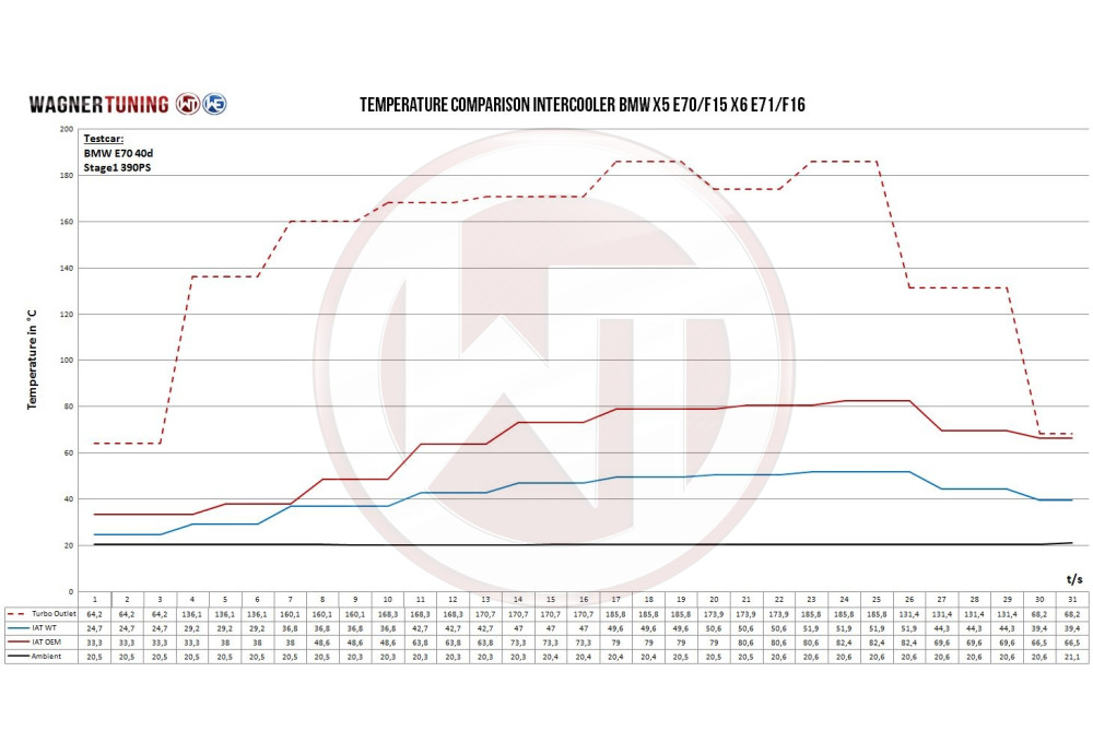 Wagner Tuning Competition high performance core is based on Tube Fin technology with internal turbulators. Despite its considerable size, the entire intercooler weighs only a light 12.5 kg. The cast aluminum end boxes have been optimized using flow analysis in the CFD system to reduce backpressure to a minimum. The result: outstanding cooling properties. Wagner Tuning intercoolers feature an anti-corrosion coating with outstanding heat conduction properties that ensure lasting and optimal cooling. Count on a continuous increase in performance. This kit is completely ready to install and requires only the replacement of the stock intercooler - a plug-and-play experience. The original intercooler hoses can still be used. Our intercooler has been tested to an impressive 6 bar pressure and has proven its pressure stability.
