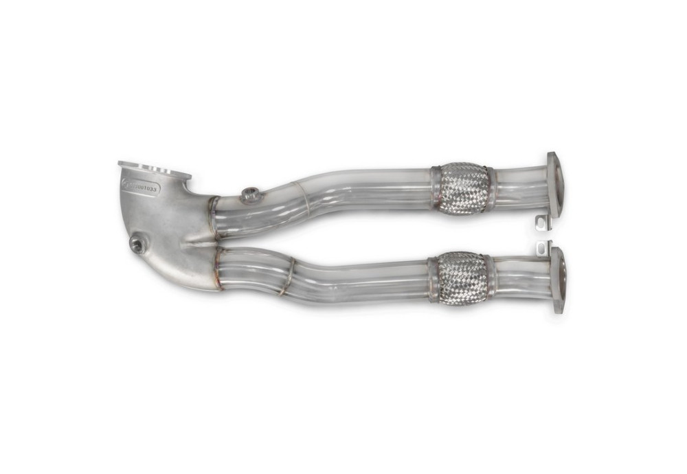 Optional including after-catalyst-pipe with 2x 200CPSI racing catalysts (for GPF-Version the exhaust needs to be cut)