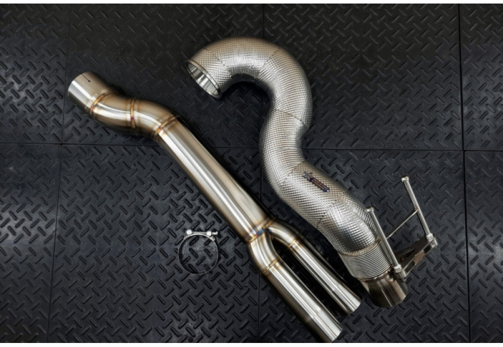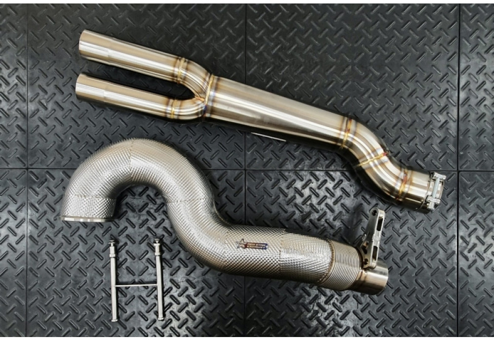 DTM-Tuning Exhaust downpipe for the new Audi RS3 8Y. Optimized single-tube design, provides a huge increase in exhaust flow and will allow for a significant power gain.