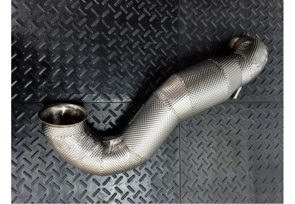 OE-style Heat Shielding with ceramic inner liner - signature DTM-Tuning thermal management feature that reduces radiant heat from the exhaust pipes up to 70-80%. Being inspired by racecar engineers who uses it alot, we moved heat shielding to the tuning industry and made it available as an option for any DTM-Tuning products. Usual thermal wraps or ceramic coatings are not even close in effectiveness and durability to our Heat Shielding. Please be aware of fake shielding when it is nothing but foil wrapped around the pipe. Without a sufficient ceramic wool layer inside and properly embossed foil it will not work as expected.