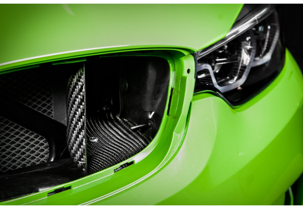 EVENTURI Carbon Air Intake System For BMW M3 F80 F81, The scoops and ducts in our system combine to provide the filter openings with ambient air and maintain low intake air temperature.