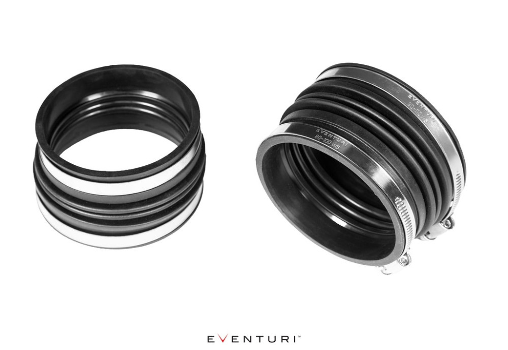 By taking the housings further in length towards the plenum, we had to replace the OEM flexible hose with our own version to maintain flexibility. Our EPDM couplers are internally stepped like the OEM versions to create a smooth path between the housings and the plenum.