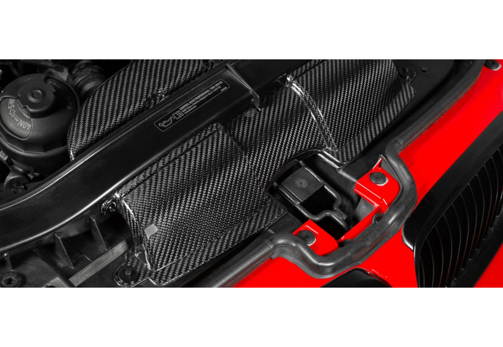 Our M3 E9X carbon ducts are a direct replacement for the OEM plastic ducts to bring that finishing touch to the engine bay. These ducts are made using prepreg carbon and match the rest of our E9X M3 line up for the ultimate OEM+ theme. We have also replaced the flexible joining piece between the ducts and the airbox with an EPDM coupler featuring our raised V logo. During development, consideration was given to add scoops to the front duct but after analysis we found there was no performance benefit due to the small opening between the ducts and the airbox so we opted not to add scoops. This also leaves the grill openings unobstructed for optimum flow to the radiator.