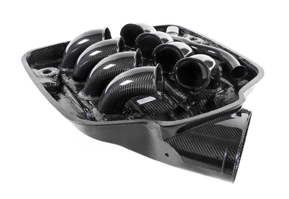 The Eventuri E9X M3 Carbon inlet plenum is crafted from 100% prepreg carbon fiber and consists of a number of components engineered to perform a specific purpose: