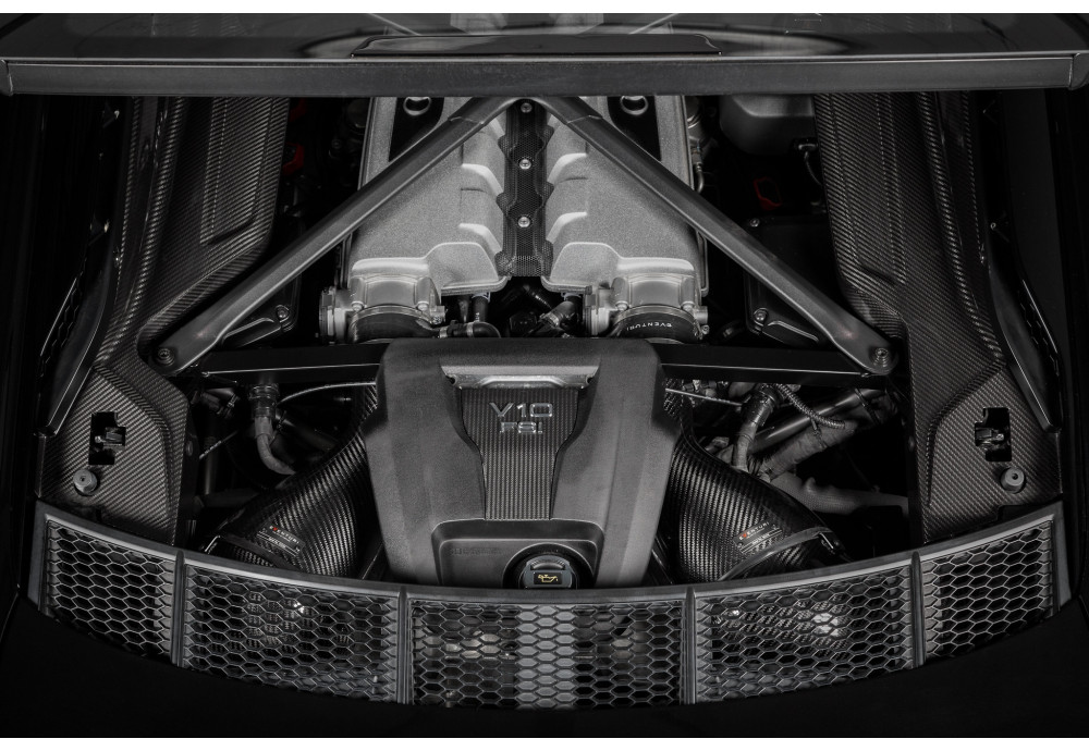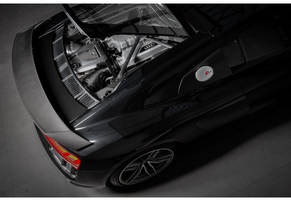 The Audi R8 Eventuri intake system – form and function in sublime harmony. Our aim was to create a flagship intake and set a benchmark for this platform – by using organic curves and prepreg carbon fiber the results speak for themselves. Gone are the awkward cuboid plastic airboxes and in their place is a beautifully engineered system which allows for smoother airflow and releases the glorious roar from the V10 engine. Every detail has been taken into account, from the flawless carbon fiber with integrated MAF tubes to the heat shields and custom silicon joiners. More power, improved throttle response and an intoxicating induction sound to elevate the R8’s driving experience. The R8 will require a tune to allow the intakes to work without a Check Engine Light. This is down to the narrow MAF range set by the factory which is exceeded by the higher airflow which the intakes provide.
