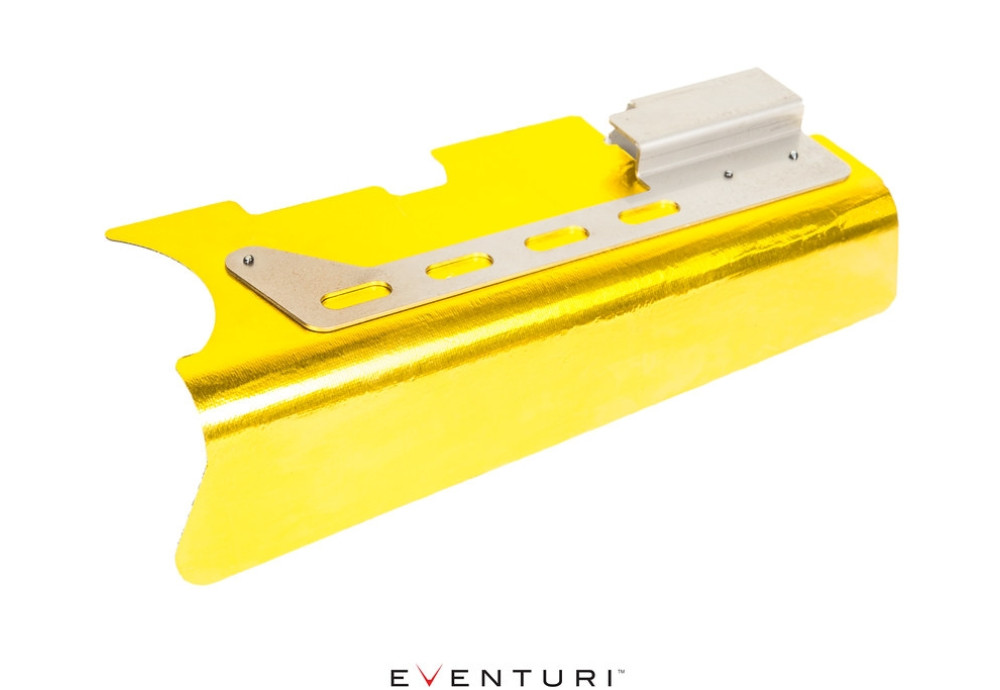 Due to the intense heat generated by the turbo, we designed a heat shield to protect the carbon tube. The shield is powder coated black but has a gold reflective layer on the base which deflects radiation heat from the turbo and catalyst. It has a stainless steel brace to provide rigidity and curves around the back of the tube to deflect convective heat away. Please note - this shield may not fit some full frame turbo systems with a different exhaust manifold.