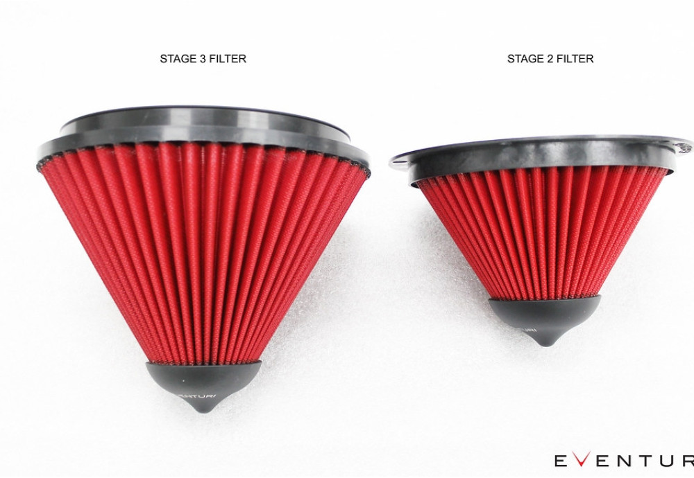 The RS3 8Y Eventuri system uses our Patented Carbon fiber Housings which provide an aerodynamically efficient airflow path from the filter to the turbo tubing. Not just another cone filter with a heat shield but a unique design which invokes the Venturi affect.