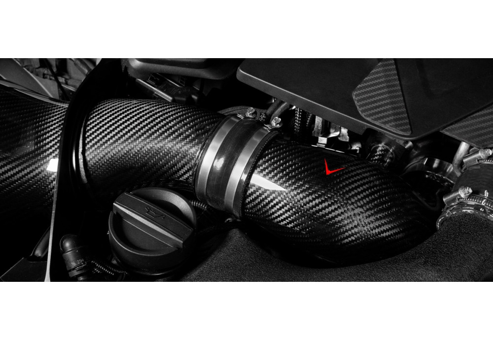 Presenting the perfect addition to our M8 F99 F92 F93 intake system to optimise the flow path all the way to the turbos. Our carbon inlets have a larger volume than the stock inlets by maintaining a larger diameter all the way to the turbos. The stock inlets narrow down immediately after the connection to the intake which creates a restriction especially at higher boost levels. We have alleviated this restriction and also designed the curvature to be as smooth as possible allowing the turbos to reach peak boost sooner.