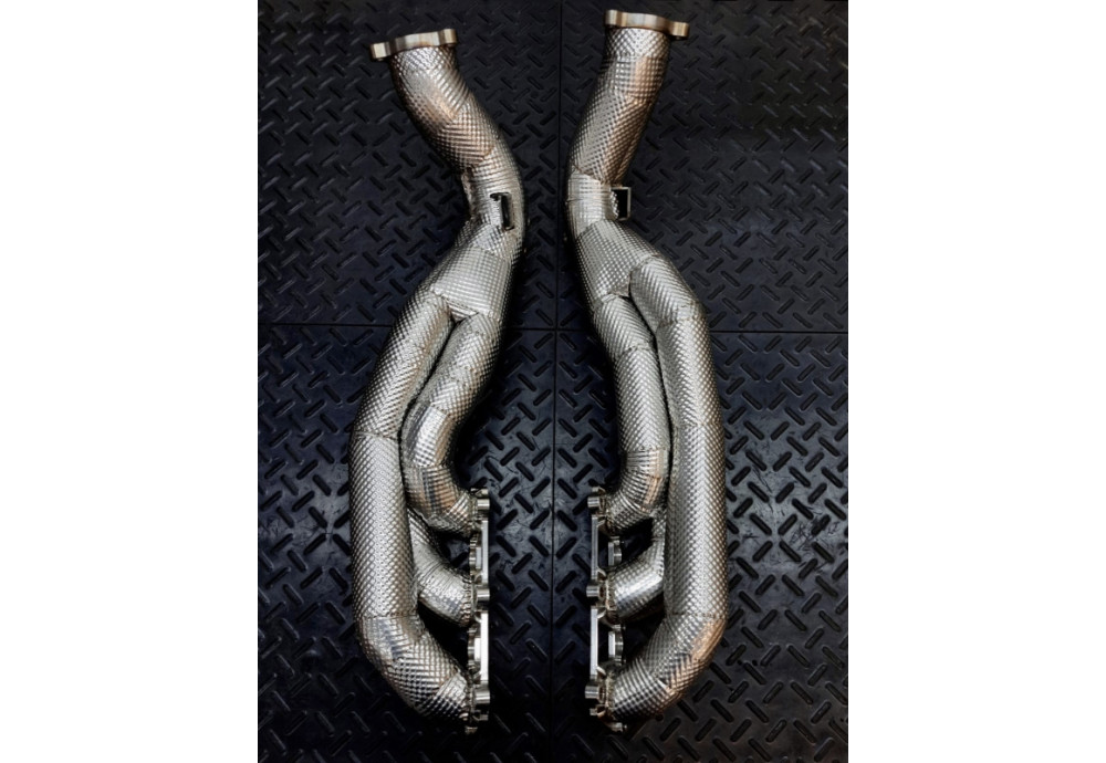 OE-style Heat Shielding with ceramic inner liner - signature DTM-Tuning thermal management feature that reduces radiant heat from the exhaust pipes up to 70-80%. Being inspired by racecar engineers who uses it alot, we moved heat shielding to the tuning industry and made it available as an option for any DTM-Tuning products. Usual thermal wraps or ceramic coatings are not even close in effectiveness and durability to our Heat Shielding. Please be aware of fake shielding when it is nothing but foil wrapped around the pipe. Without a sufficient ceramic wool layer inside and properly embossed foil it will not work not work as expected.
