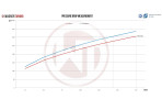 The high performance intercooler has the following core dimension (515mm x 367mm x 95mm = 16,5L/14,45Inch x 3,74Inch = 1006,9Inch³) and this offers a 84% larger cooling surface and 101% more charge air volume compared to the original intercooler. Our engineers have increased the intercooler core size and efficiency, as well as improved the end tank design to remove any OEM bottlenecks, resulting in increased flow rating and charge cooling properties. This Audi RS3 intercooler uses our award winning WAGNERTUNING Competition Intercooler Core, which is made specifically for this application. Constructed of the highest quality TUBE and FIN intercooler cores with inside turbulators combined with cast aluminum endtanks optimized by CFD for best possible internal airflow. With the help of additional air guides, inside inlet, a uniform filling of the intercooler is provided. The result is excellent cooling properties with minimum pressure drop. So this kit is just the right thing for racing. The intercooler and the crossmember form a stable unit and weighs only 14,3 kg. It is mounted to the original mounting points and is easy to perform (1:1 exchange). Optimum cooling of the charged air with a clear increase in performance! 68mm (2,67Inch) in- and outlets.