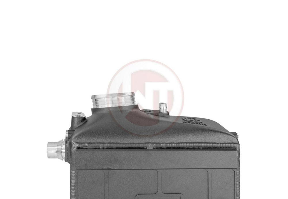 The WAGNER TUNING high performance intercooler impresses with a new type of performance intercooler core measuring 222 mm x 297 mm x 95 mm. This unique design offers 133% more external core volume compared to the stock intercooler. The balanced ratio between internal and external cooling surface ensures maximum heat transfer and optimized internal airflow. Thanks to the CAD-optimized cast aluminum end boxes and advanced CFD simulations, this intercooler impresses with outstanding cooling performance at minimal backpressure. Thus, it is also ideally suited for use in racing. Experience optimal cooling of the charged air and a significant increase in performance!