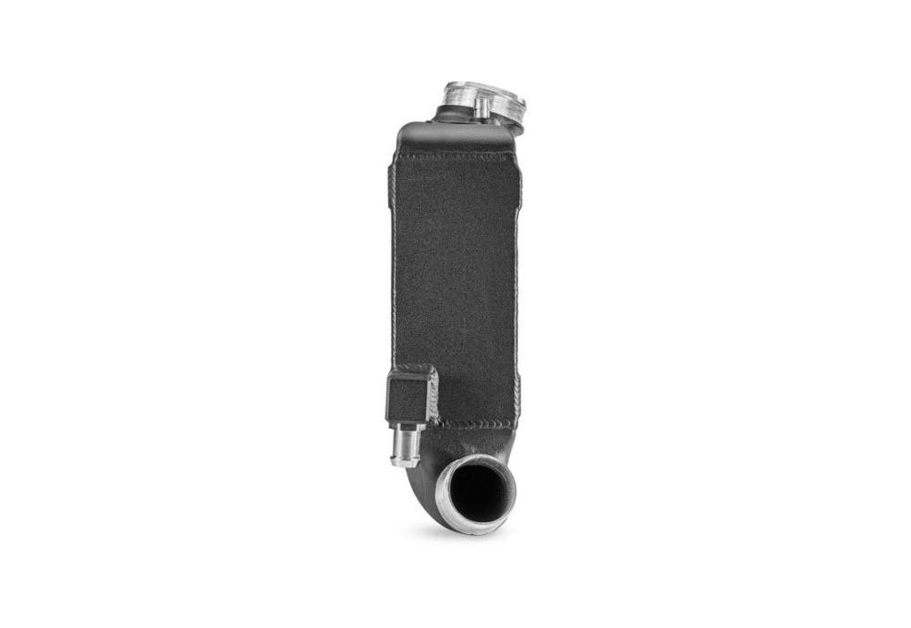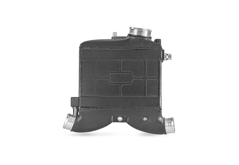 The WAGNER TUNING high performance intercooler impresses with a new type of performance intercooler core measuring 222 mm x 297 mm x 95 mm. This unique design offers 133% more external core volume compared to the stock intercooler. The balanced ratio between internal and external cooling surface ensures maximum heat transfer and optimized internal airflow. Thanks to the CAD-optimized cast aluminum end boxes and advanced CFD simulations, this intercooler impresses with outstanding cooling performance at minimal backpressure. Thus, it is also ideally suited for use in racing. Experience optimal cooling of the charged air and a significant increase in performance!