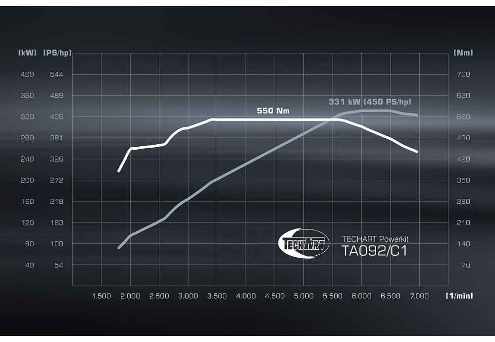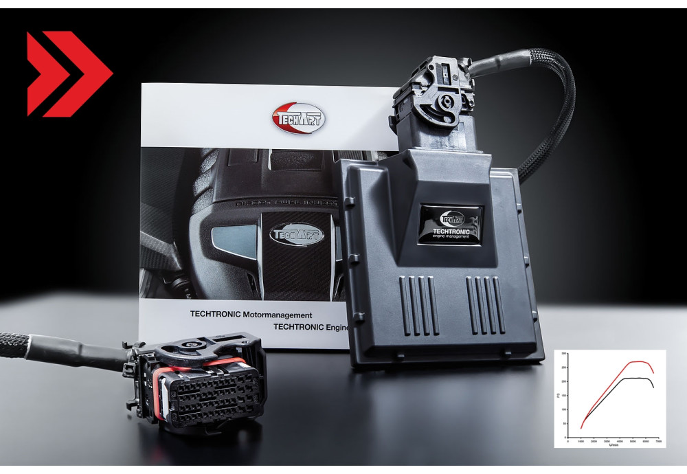 Porsche 911 (992) Carrera/4 3.0 l l Techart Techtronic Power enhancement +48 kW (+65 hp) Torque increase +100 Nm Total power output 331 kW (450 hp)/550 Nm