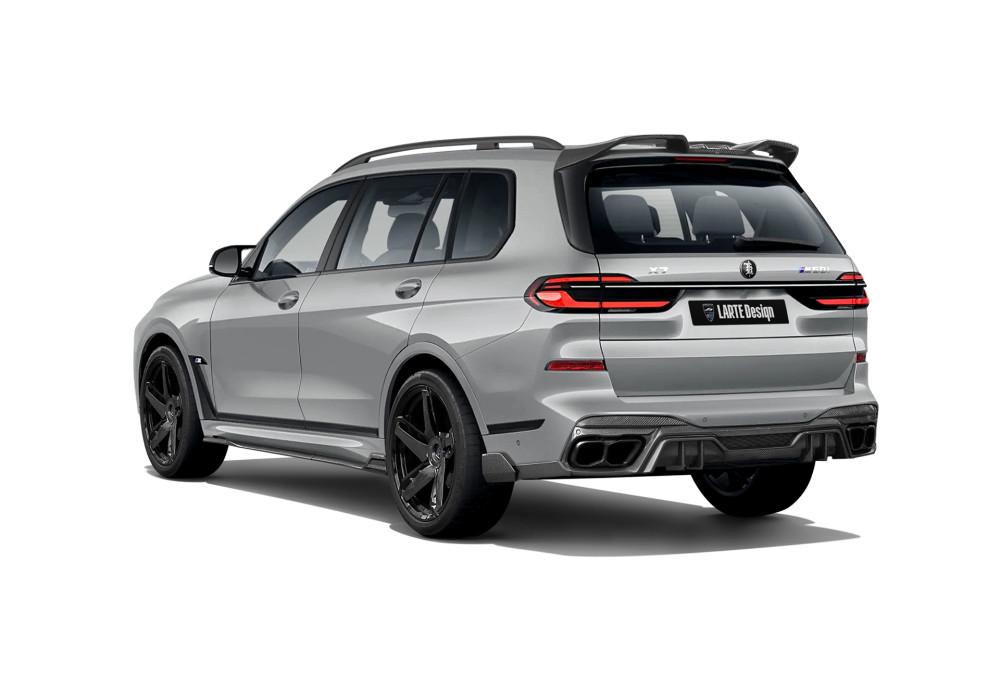 Larte Performance body kit for BMW X7 G07 LCI models from 2022 in Luxury and M Sport trims. The exterior tuning parts will transform the style of your BMW and add a sporty aggression to it. Each detail is handmade by Larte Design's designers and engineers and can be made from 100% carbon or premium composite material based on basalt fiber and painted in Glossy black or real Carbon Fiber.
