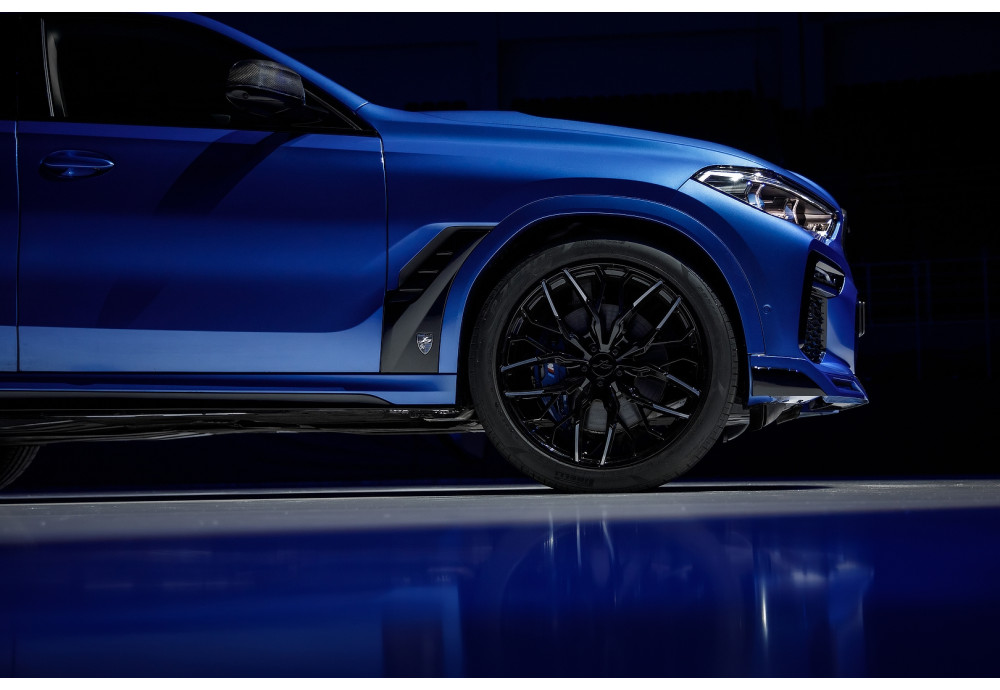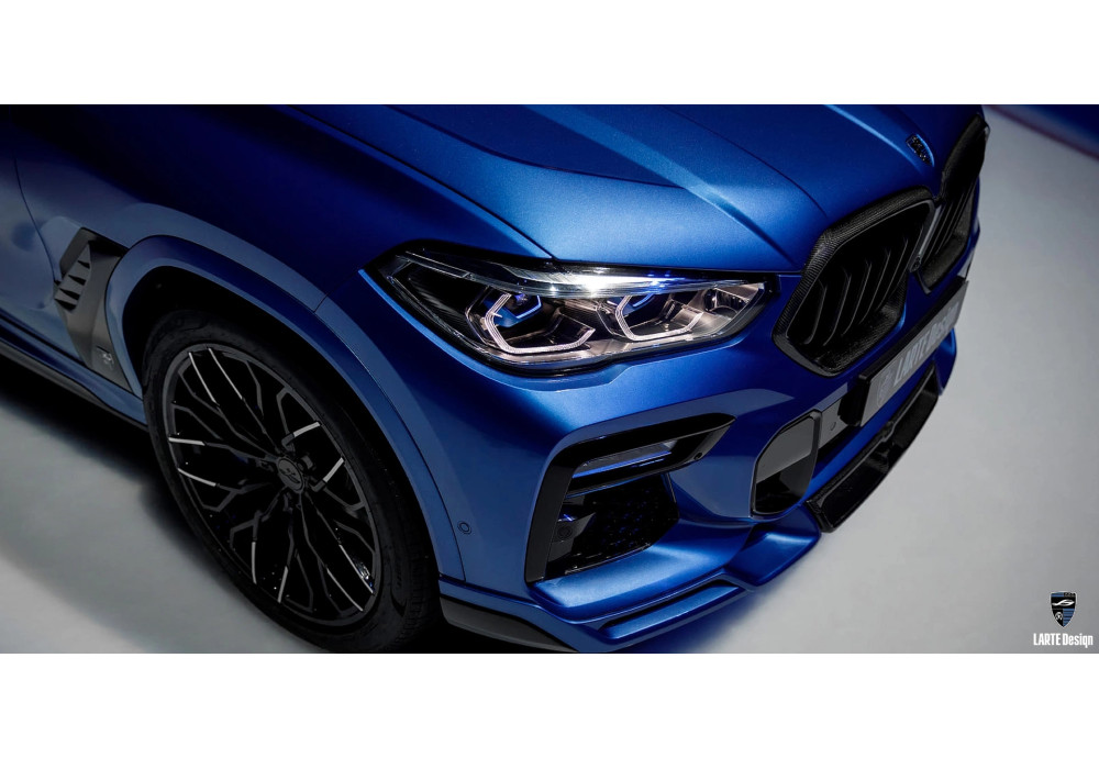 Enhance your BMW X6 and create a unique style by installing a front lip and diffuser, custom exhaust tips, and a unique hood. Complete the look with Larte custom wheel discs ranging from 19 to 24 inches, tailored to your individual preferences.